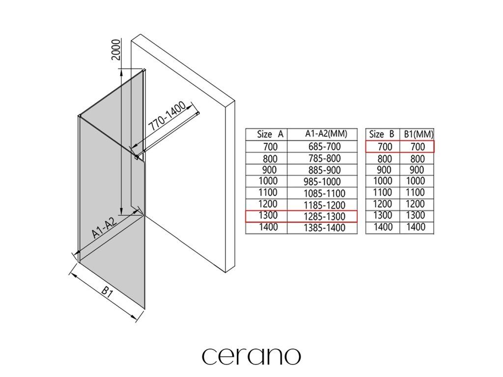 V rámci tejto série ponúkame širokú škálu rozmerov, aby sme uspokojili rôzne potreby našich zákazníkov. Všetky sprchové kúty, dvere a zásteny značky Cerano sú plne kompatibilné so sprchovými vaničkami Cerano v rovnakých rozmeroch, čo zaisťuje bezproblémovú inštaláciu a dokonalé zladenie. Sprchovací kút je možné navyše inštalovať flexibilne – buď na zodpovedajúcu sprchovú vaničku, alebo priamo na podlahu podľa vašich preferencií a možností kúpeľne.