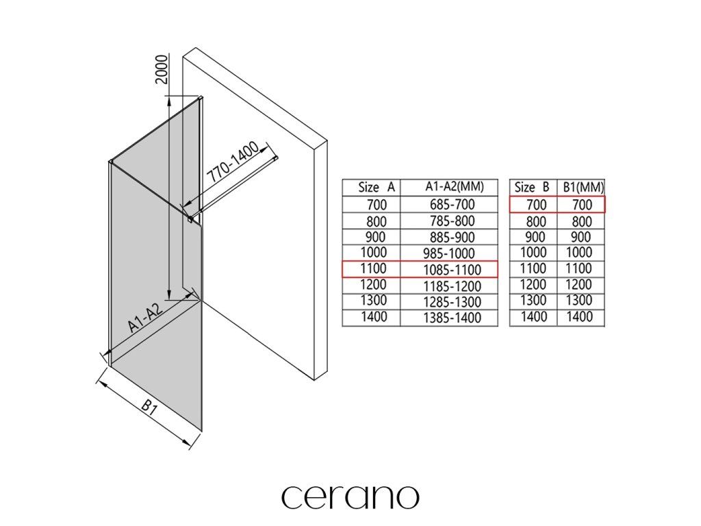 V rámci tejto série ponúkame širokú škálu rozmerov, aby sme uspokojili rôzne potreby našich zákazníkov. Všetky sprchové kúty, dvere a zásteny značky Cerano sú plne kompatibilné so sprchovými vaničkami Cerano v rovnakých rozmeroch, čo zaisťuje bezproblémovú inštaláciu a dokonalé zladenie. Sprchovací kút je možné navyše inštalovať flexibilne – buď na zodpovedajúcu sprchovú vaničku, alebo priamo na podlahu podľa vašich preferencií a možností kúpeľne.