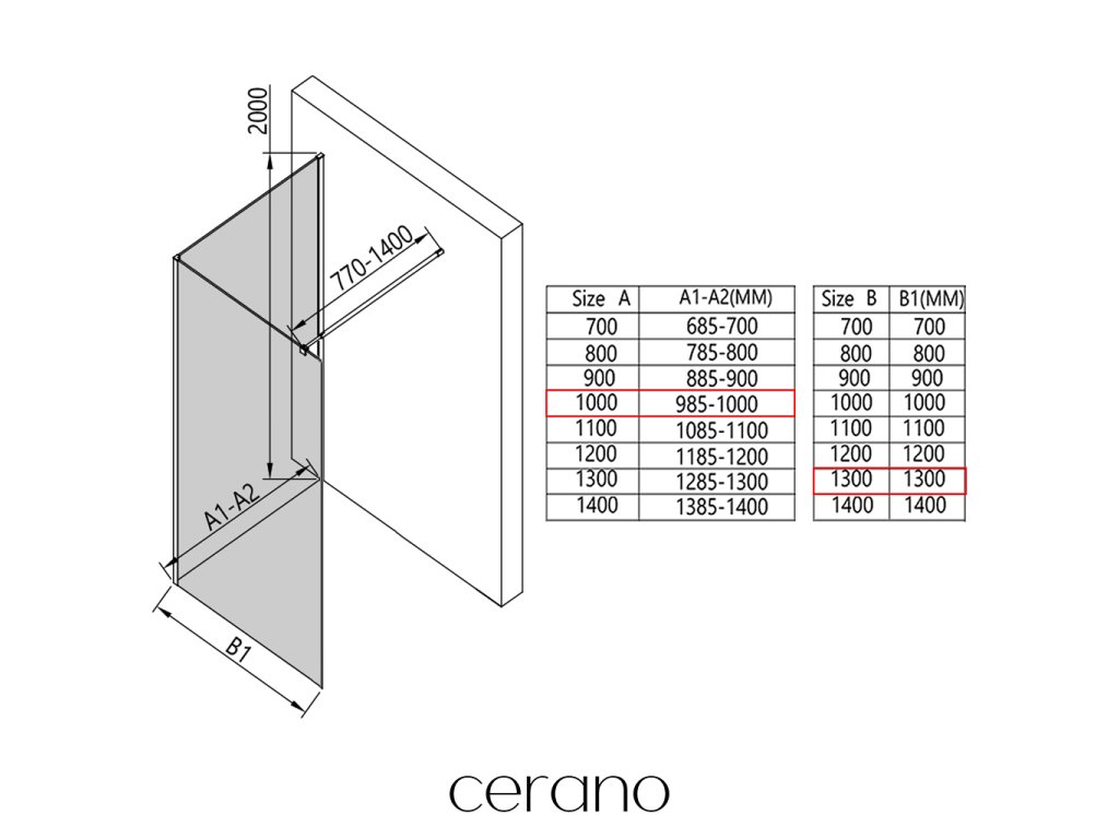 V rámci tejto série ponúkame širokú škálu rozmerov, aby sme uspokojili rôzne potreby našich zákazníkov. Všetky sprchové kúty, dvere a zásteny značky Cerano sú plne kompatibilné so sprchovými vaničkami Cerano v rovnakých rozmeroch, čo zaisťuje bezproblémovú inštaláciu a dokonalé zladenie. Sprchovací kút je možné navyše inštalovať flexibilne – buď na zodpovedajúcu sprchovú vaničku, alebo priamo na podlahu podľa vašich preferencií a možností kúpeľne.