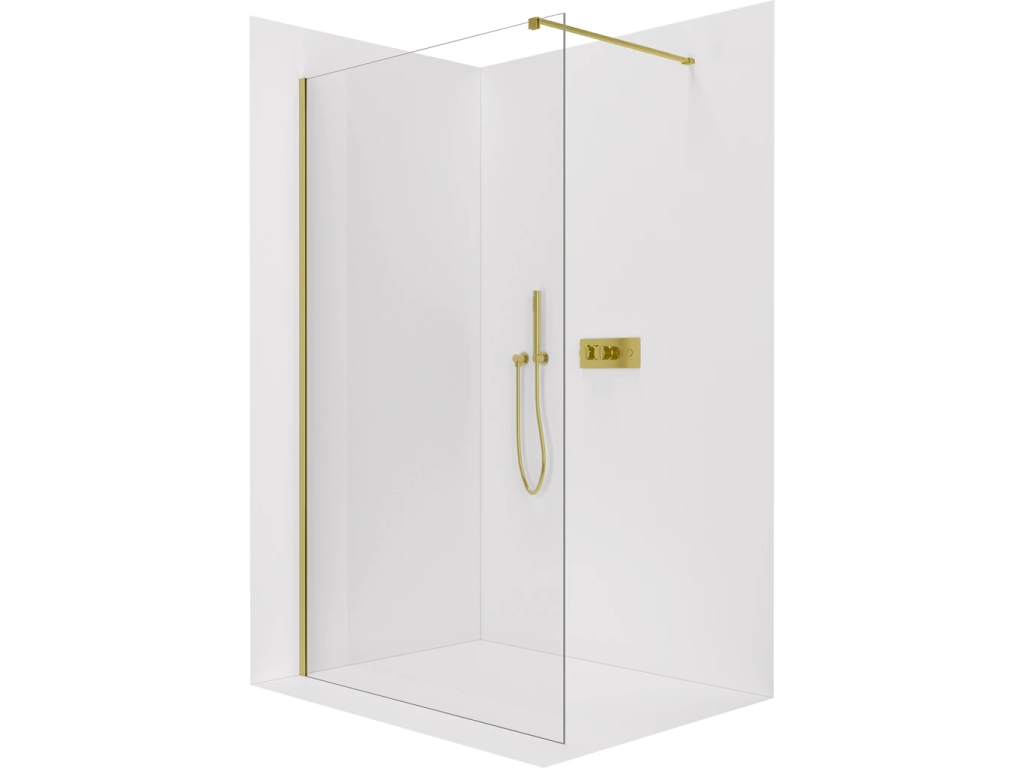 CERANO - Sprchová zástena Walk-in Onyx Cube Ľ/P - 8 mm - hranatá vzpera - zlatá, transparentné sklo - 50x200 cm
