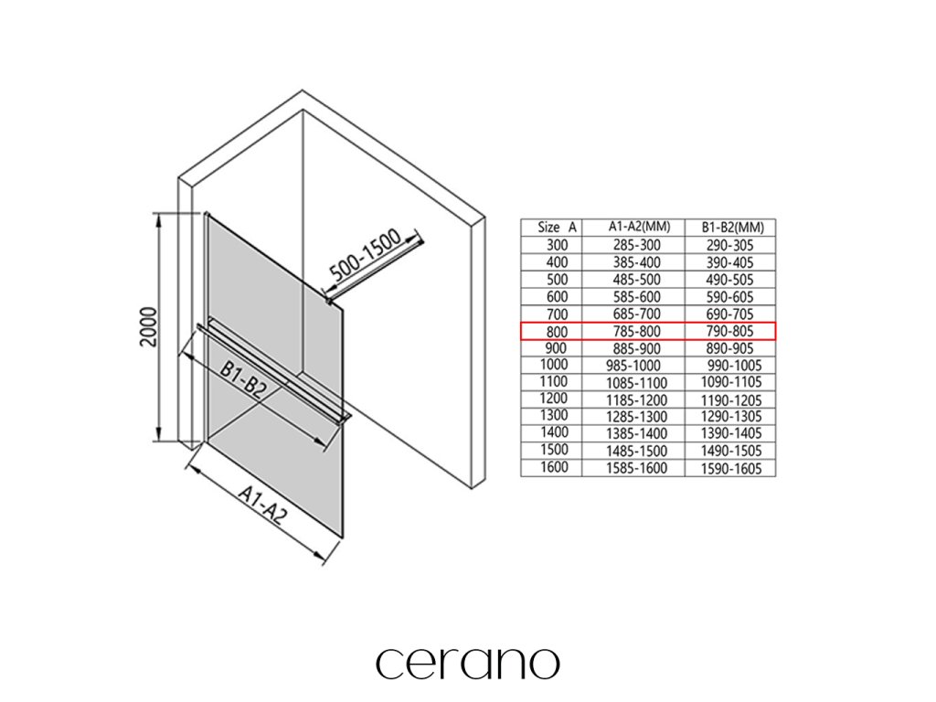 V rámci tejto série ponúkame širokú škálu rozmerov, aby sme uspokojili rôzne potreby našich zákazníkov. Všetky sprchové kúty, dvere a zásteny značky Cerano sú plne kompatibilné so sprchovými vaničkami Cerano v rovnakých rozmeroch, čo zaisťuje bezproblémovú inštaláciu a dokonalé zladenie. Sprchovací kút je možné navyše inštalovať flexibilne – buď na zodpovedajúcu sprchovú vaničku, alebo priamo na podlahu podľa vašich preferencií a možností kúpeľne.