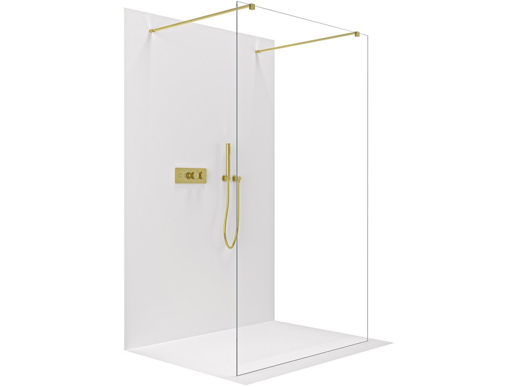 CERANO - Sprchová zástena Walk-in Onyx Duo Ľ/P - 8 mm - hranatá vzpera - zlatá kartáčovaná, transparentné sklo - 140x200 cm