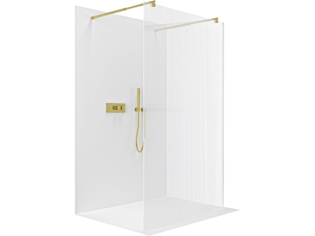 CERANO - Sprchová zástena Walk-in Onyx Duo Ľ/P - 8 mm - okrúhla vzpera - zlatá kartáčovaná, ryhované sklo - 50x200 cm