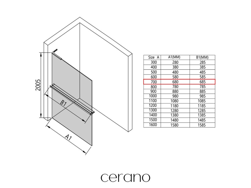 V rámci tejto série ponúkame širokú škálu rozmerov, aby sme uspokojili rôzne potreby našich zákazníkov. Všetky sprchové kúty, dvere a zásteny značky Cerano sú plne kompatibilné so sprchovými vaničkami Cerano v rovnakých rozmeroch, čo zaisťuje bezproblémovú inštaláciu a dokonalé zladenie. Sprchovací kút je možné navyše inštalovať flexibilne – buď na zodpovedajúcu sprchovú vaničku, alebo priamo na podlahu podľa vašich preferencií a možností kúpeľne.