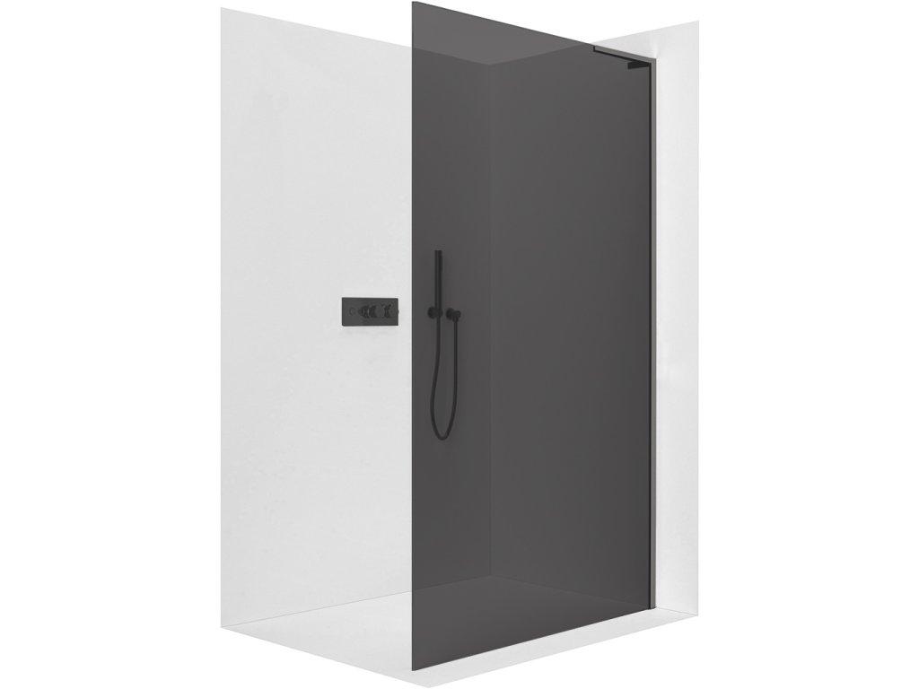 CERANO - Sprchová zástena Walk-in Onyx L-pravá vzpera - 8 mm - čierna matná, grafitové sklo - 50x200 cm