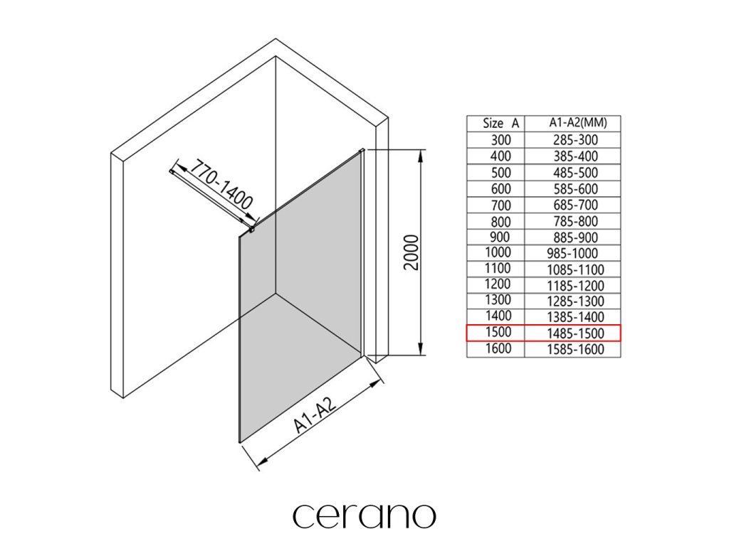 V rámci tejto série ponúkame širokú škálu rozmerov, aby sme uspokojili rôzne potreby našich zákazníkov. Všetky sprchové kúty, dvere a zásteny značky Cerano sú plne kompatibilné so sprchovými vaničkami Cerano v rovnakých rozmeroch, čo zaisťuje bezproblémovú inštaláciu a dokonalé zladenie. Sprchovací kút je možné navyše inštalovať flexibilne – buď na zodpovedajúcu sprchovú vaničku, alebo priamo na podlahu podľa vašich preferencií a možností kúpeľne.