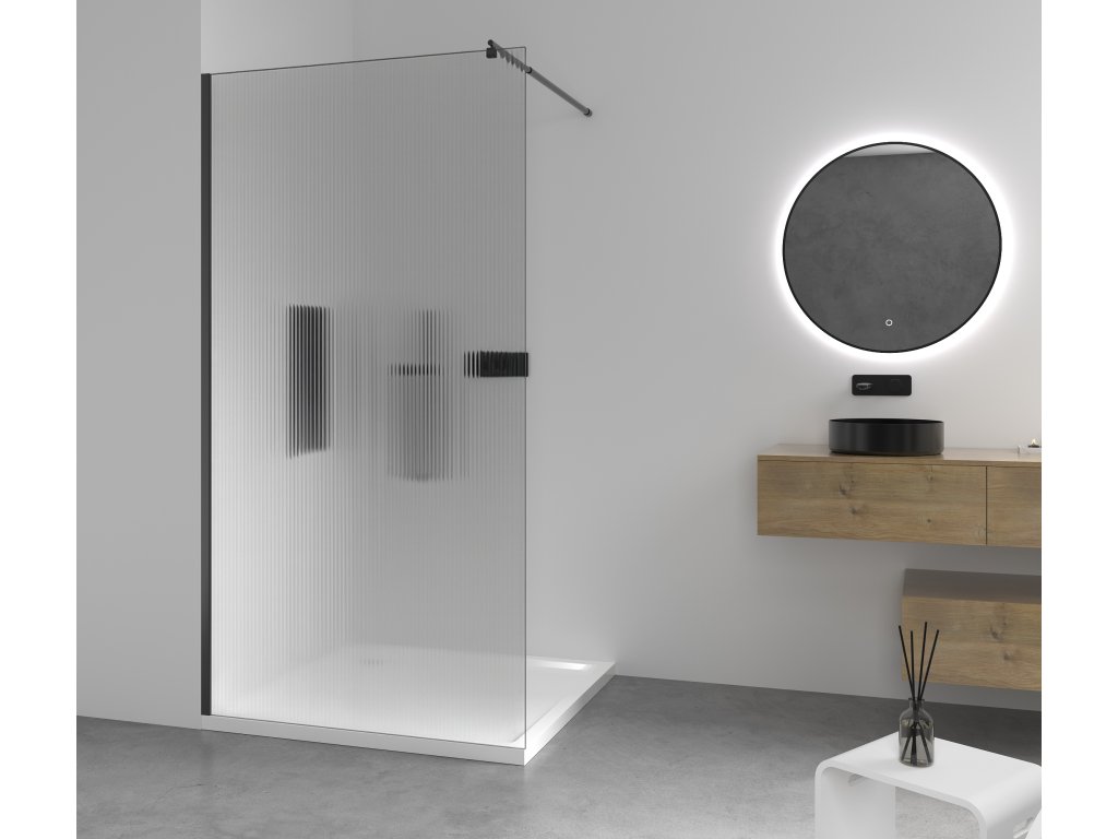 CERANO - Sprchová zástena Walk-in Onyx Round Ľ/P - 8 mm - guľatá vzpera - čierna matná, ryhované sklo - 140x200 cm