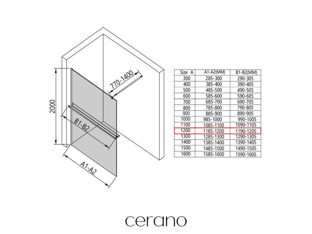 V rámci tejto série ponúkame širokú škálu rozmerov, aby sme uspokojili rôzne potreby našich zákazníkov. Všetky sprchové kúty, dvere a zásteny značky Cerano sú plne kompatibilné so sprchovými vaničkami Cerano v rovnakých rozmeroch, čo zaisťuje bezproblémovú inštaláciu a dokonalé zladenie. Sprchovací kút je možné navyše inštalovať flexibilne – buď na zodpovedajúcu sprchovú vaničku, alebo priamo na podlahu podľa vašich preferencií a možností kúpeľne.