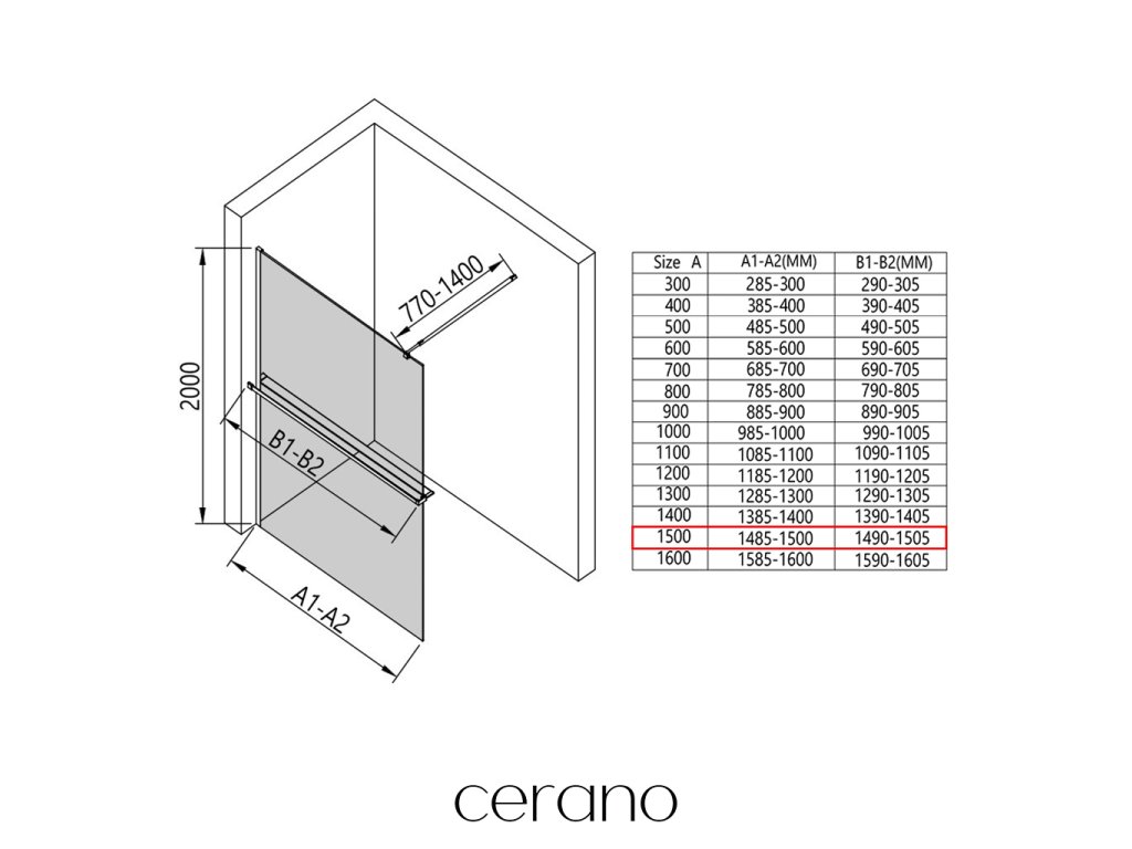 V rámci tejto série ponúkame širokú škálu rozmerov, aby sme uspokojili rôzne potreby našich zákazníkov. Všetky sprchové kúty, dvere a zásteny značky Cerano sú plne kompatibilné so sprchovými vaničkami Cerano v rovnakých rozmeroch, čo zaisťuje bezproblémovú inštaláciu a dokonalé zladenie. Sprchovací kút je možné navyše inštalovať flexibilne – buď na zodpovedajúcu sprchovú vaničku, alebo priamo na podlahu podľa vašich preferencií a možností kúpeľne.