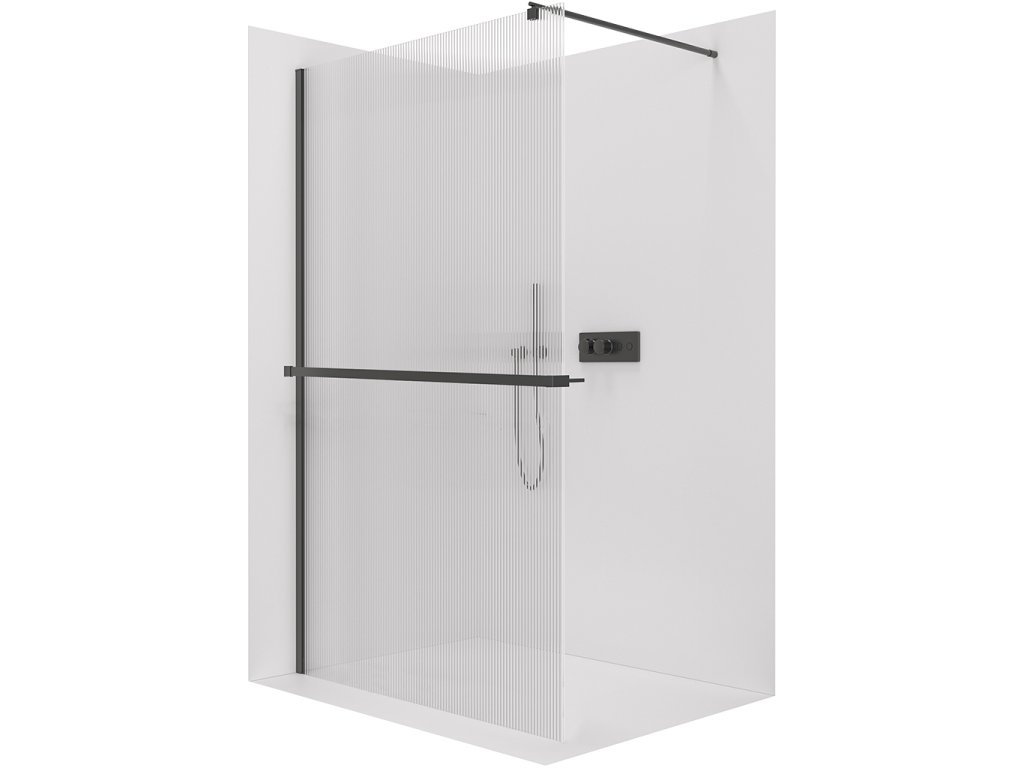 CERANO - Sprchová zástena Walk-in Onyx Round Ľ/P - 8 mm + polička/držiak na uteráky - guľatá vzpera - čierna matná, ryhované sklo - 60x200 cm