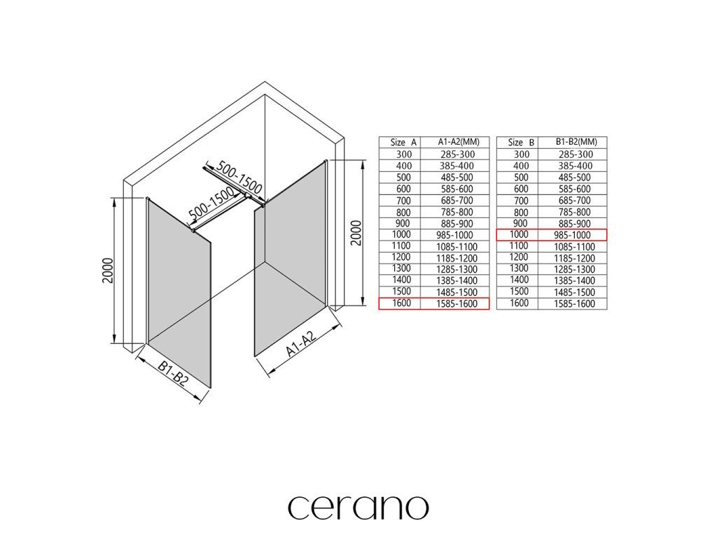 V rámci tejto série ponúkame širokú škálu rozmerov, aby sme uspokojili rôzne potreby našich zákazníkov. Všetky sprchové kúty, dvere a zásteny značky Cerano sú plne kompatibilné so sprchovými vaničkami Cerano v rovnakých rozmeroch, čo zaisťuje bezproblémovú inštaláciu a dokonalé zladenie. Sprchovací kút je možné navyše inštalovať flexibilne – buď na zodpovedajúcu sprchovú vaničku, alebo priamo na podlahu podľa vašich preferencií a možností kúpeľne.