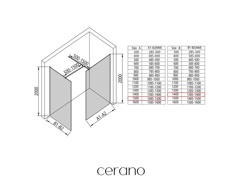 V rámci tejto série ponúkame širokú škálu rozmerov, aby sme uspokojili rôzne potreby našich zákazníkov. Všetky sprchové kúty, dvere a zásteny značky Cerano sú plne kompatibilné so sprchovými vaničkami Cerano v rovnakých rozmeroch, čo zaisťuje bezproblémovú inštaláciu a dokonalé zladenie. Sprchovací kút je možné navyše inštalovať flexibilne – buď na zodpovedajúcu sprchovú vaničku, alebo priamo na podlahu podľa vašich preferencií a možností kúpeľne.
