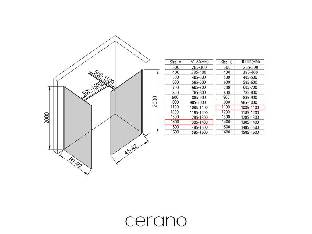 V rámci tejto série ponúkame širokú škálu rozmerov, aby sme uspokojili rôzne potreby našich zákazníkov. Všetky sprchové kúty, dvere a zásteny značky Cerano sú plne kompatibilné so sprchovými vaničkami Cerano v rovnakých rozmeroch, čo zaisťuje bezproblémovú inštaláciu a dokonalé zladenie. Sprchovací kút je možné navyše inštalovať flexibilne – buď na zodpovedajúcu sprchovú vaničku, alebo priamo na podlahu podľa vašich preferencií a možností kúpeľne.