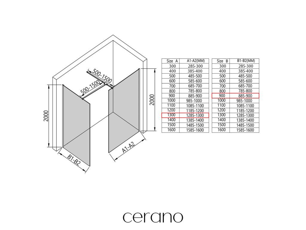 V rámci tejto série ponúkame širokú škálu rozmerov, aby sme uspokojili rôzne potreby našich zákazníkov. Všetky sprchové kúty, dvere a zásteny značky Cerano sú plne kompatibilné so sprchovými vaničkami Cerano v rovnakých rozmeroch, čo zaisťuje bezproblémovú inštaláciu a dokonalé zladenie. Sprchovací kút je možné navyše inštalovať flexibilne – buď na zodpovedajúcu sprchovú vaničku, alebo priamo na podlahu podľa vašich preferencií a možností kúpeľne.