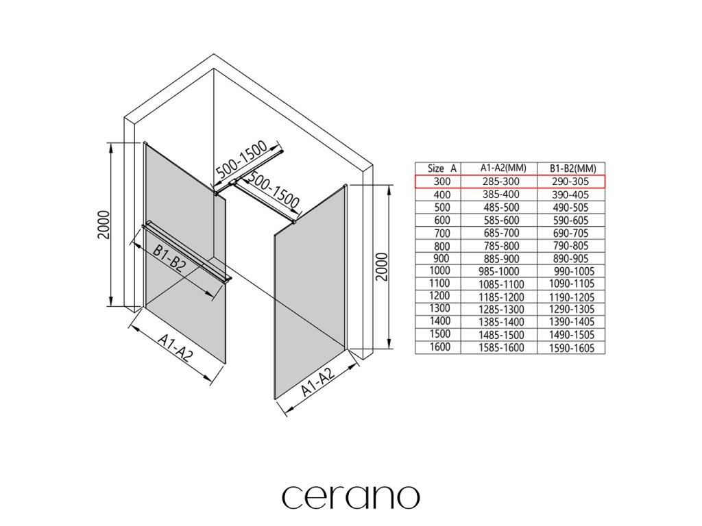 V rámci tejto série ponúkame širokú škálu rozmerov, aby sme uspokojili rôzne potreby našich zákazníkov. Všetky sprchové kúty, dvere a zásteny značky Cerano sú plne kompatibilné so sprchovými vaničkami Cerano v rovnakých rozmeroch, čo zaisťuje bezproblémovú inštaláciu a dokonalé zladenie. Sprchovací kút je možné navyše inštalovať flexibilne – buď na zodpovedajúcu sprchovú vaničku, alebo priamo na podlahu podľa vašich preferencií a možností kúpeľne.