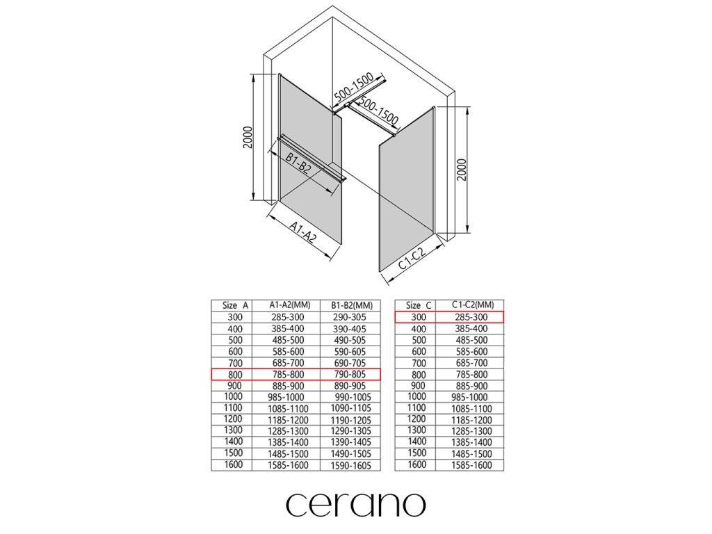 V rámci tejto série ponúkame širokú škálu rozmerov, aby sme uspokojili rôzne potreby našich zákazníkov. Všetky sprchové kúty, dvere a zásteny značky Cerano sú plne kompatibilné so sprchovými vaničkami Cerano v rovnakých rozmeroch, čo zaisťuje bezproblémovú inštaláciu a dokonalé zladenie. Sprchovací kút je možné navyše inštalovať flexibilne – buď na zodpovedajúcu sprchovú vaničku, alebo priamo na podlahu podľa vašich preferencií a možností kúpeľne.