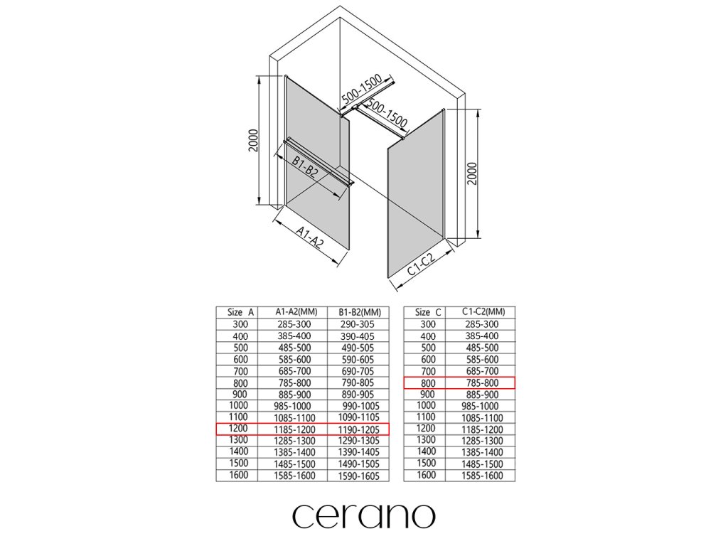 V rámci tejto série ponúkame širokú škálu rozmerov, aby sme uspokojili rôzne potreby našich zákazníkov. Všetky sprchové kúty, dvere a zásteny značky Cerano sú plne kompatibilné so sprchovými vaničkami Cerano v rovnakých rozmeroch, čo zaisťuje bezproblémovú inštaláciu a dokonalé zladenie. Sprchovací kút je možné navyše inštalovať flexibilne – buď na zodpovedajúcu sprchovú vaničku, alebo priamo na podlahu podľa vašich preferencií a možností kúpeľne.
