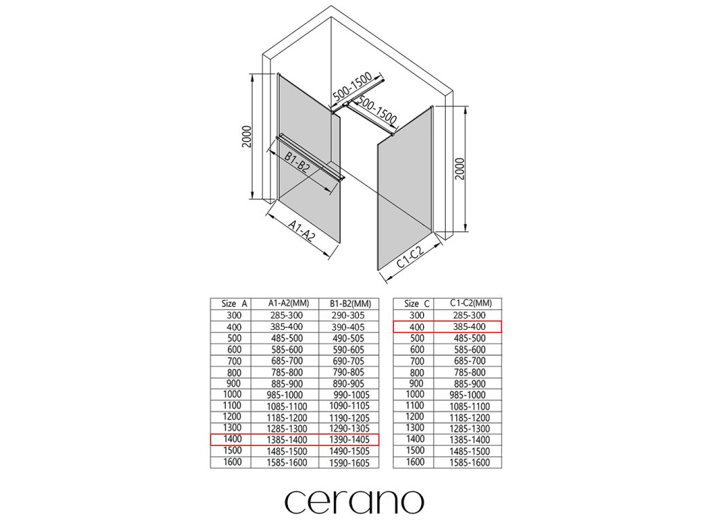 V rámci tejto série ponúkame širokú škálu rozmerov, aby sme uspokojili rôzne potreby našich zákazníkov. Všetky sprchové kúty, dvere a zásteny značky Cerano sú plne kompatibilné so sprchovými vaničkami Cerano v rovnakých rozmeroch, čo zaisťuje bezproblémovú inštaláciu a dokonalé zladenie. Sprchovací kút je možné navyše inštalovať flexibilne – buď na zodpovedajúcu sprchovú vaničku, alebo priamo na podlahu podľa vašich preferencií a možností kúpeľne.