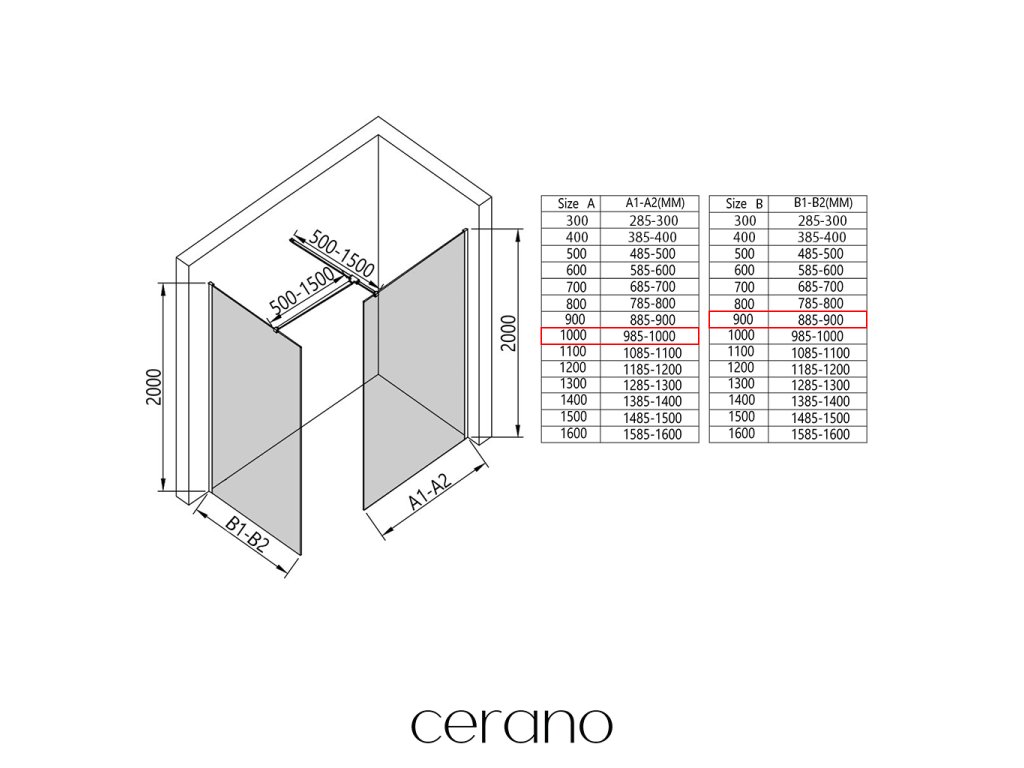 V rámci tejto série ponúkame širokú škálu rozmerov, aby sme uspokojili rôzne potreby našich zákazníkov. Všetky sprchové kúty, dvere a zásteny značky Cerano sú plne kompatibilné so sprchovými vaničkami Cerano v rovnakých rozmeroch, čo zaisťuje bezproblémovú inštaláciu a dokonalé zladenie. Sprchovací kút je možné navyše inštalovať flexibilne – buď na zodpovedajúcu sprchovú vaničku, alebo priamo na podlahu podľa vašich preferencií a možností kúpeľne.
