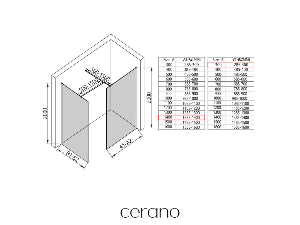 V rámci tejto série ponúkame širokú škálu rozmerov, aby sme uspokojili rôzne potreby našich zákazníkov. Všetky sprchové kúty, dvere a zásteny značky Cerano sú plne kompatibilné so sprchovými vaničkami Cerano v rovnakých rozmeroch, čo zaisťuje bezproblémovú inštaláciu a dokonalé zladenie. Sprchovací kút je možné navyše inštalovať flexibilne – buď na zodpovedajúcu sprchovú vaničku, alebo priamo na podlahu podľa vašich preferencií a možností kúpeľne.