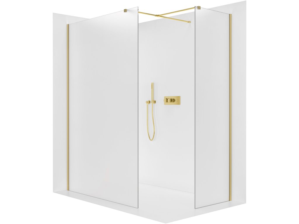 CERANO - Sprchová zástena Walk-in Onyx TL/P - 8 mm - hranatá vzpera - zlatá, mliečne sklo - 150x110x200 cm