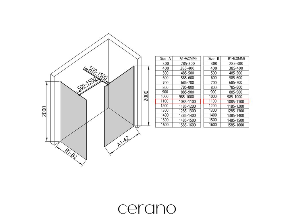 V rámci tejto série ponúkame širokú škálu rozmerov, aby sme uspokojili rôzne potreby našich zákazníkov. Všetky sprchové kúty, dvere a zásteny značky Cerano sú plne kompatibilné so sprchovými vaničkami Cerano v rovnakých rozmeroch, čo zaisťuje bezproblémovú inštaláciu a dokonalé zladenie. Sprchovací kút je možné navyše inštalovať flexibilne – buď na zodpovedajúcu sprchovú vaničku, alebo priamo na podlahu podľa vašich preferencií a možností kúpeľne.