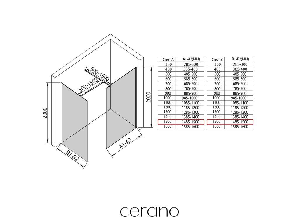 V rámci tejto série ponúkame širokú škálu rozmerov, aby sme uspokojili rôzne potreby našich zákazníkov. Všetky sprchové kúty, dvere a zásteny značky Cerano sú plne kompatibilné so sprchovými vaničkami Cerano v rovnakých rozmeroch, čo zaisťuje bezproblémovú inštaláciu a dokonalé zladenie. Sprchovací kút je možné navyše inštalovať flexibilne – buď na zodpovedajúcu sprchovú vaničku, alebo priamo na podlahu podľa vašich preferencií a možností kúpeľne.
