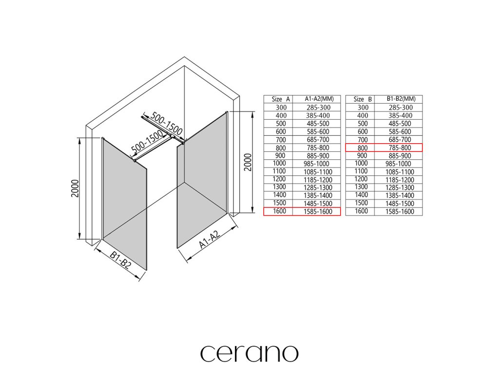 V rámci tejto série ponúkame širokú škálu rozmerov, aby sme uspokojili rôzne potreby našich zákazníkov. Všetky sprchové kúty, dvere a zásteny značky Cerano sú plne kompatibilné so sprchovými vaničkami Cerano v rovnakých rozmeroch, čo zaisťuje bezproblémovú inštaláciu a dokonalé zladenie. Sprchovací kút je možné navyše inštalovať flexibilne – buď na zodpovedajúcu sprchovú vaničku, alebo priamo na podlahu podľa vašich preferencií a možností kúpeľne.