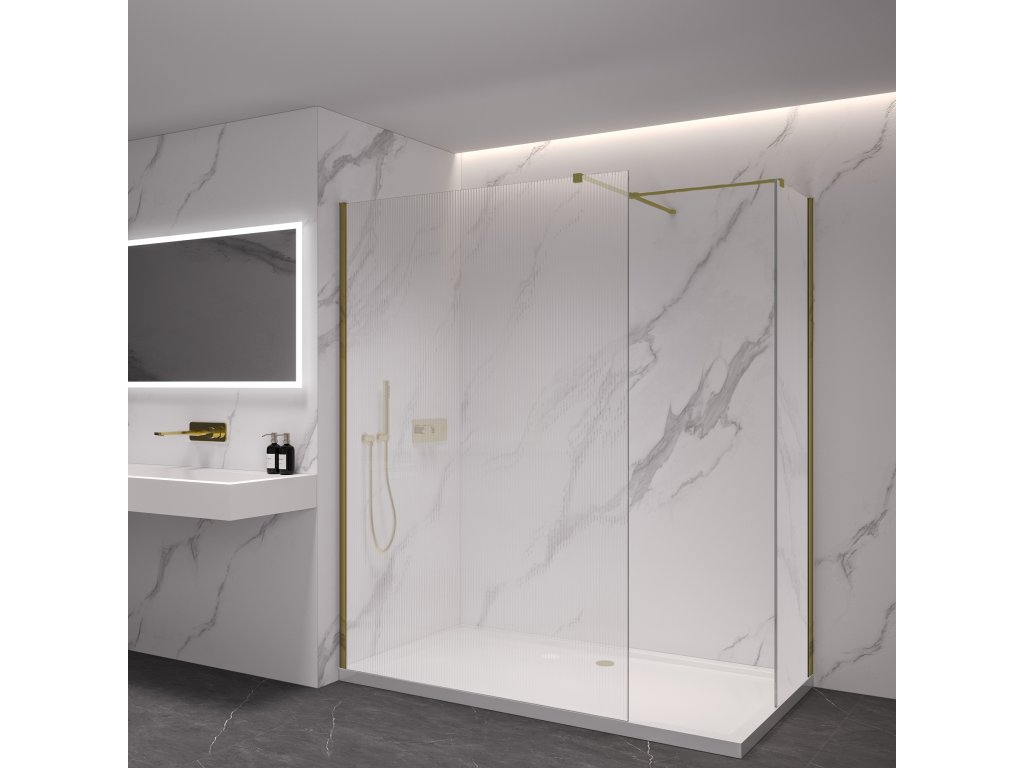 CERANO - Sprchová zástena Walk-in Onyx TL/P - 8 mm - hranatá vzpera - zlatá kartáčovaná, ryhované sklo - 110x60x200 cm