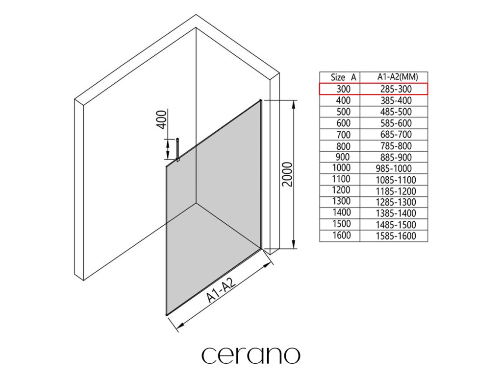 V rámci tejto série ponúkame širokú škálu rozmerov, aby sme uspokojili rôzne potreby našich zákazníkov. Všetky sprchové kúty, dvere a zásteny značky Cerano sú plne kompatibilné so sprchovými vaničkami Cerano v rovnakých rozmeroch, čo zaisťuje bezproblémovú inštaláciu a dokonalé zladenie. Sprchovací kút je možné navyše inštalovať flexibilne – buď na zodpovedajúcu sprchovú vaničku, alebo priamo na podlahu podľa vašich preferencií a možností kúpeľne.