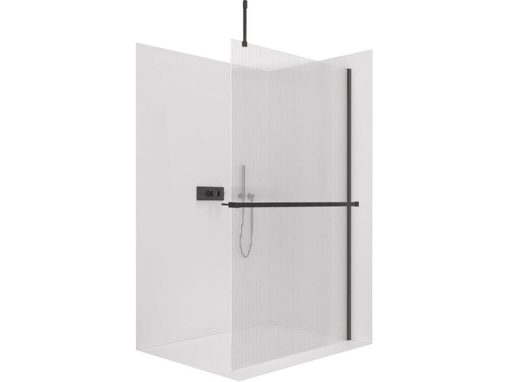 CERANO - Sprchová zástena Walk-in Onyx Top Cube Ľ/P - 8 mm - hranatá vzpera + polička/držiak na uteráky - čierna matná, ryhované sklo - 80x200 cm