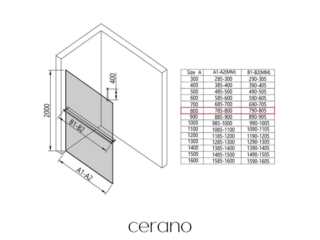 V rámci tejto série ponúkame širokú škálu rozmerov, aby sme uspokojili rôzne potreby našich zákazníkov. Všetky sprchové kúty, dvere a zásteny značky Cerano sú plne kompatibilné so sprchovými vaničkami Cerano v rovnakých rozmeroch, čo zaisťuje bezproblémovú inštaláciu a dokonalé zladenie. Sprchovací kút je možné navyše inštalovať flexibilne – buď na zodpovedajúcu sprchovú vaničku, alebo priamo na podlahu podľa vašich preferencií a možností kúpeľne.