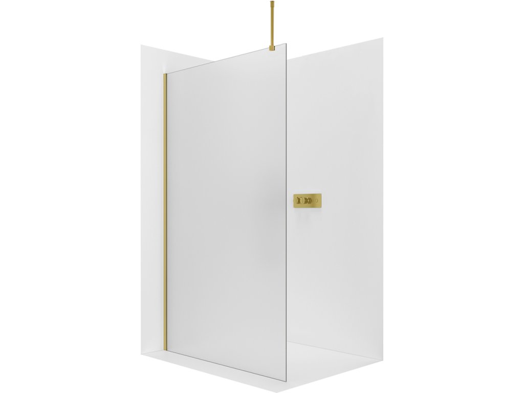 CERANO - Sprchová zástena Walk-in Onyx Top Round Ľ/P - 8 mm - guľatá vzpera - zlatá kartáčovaná, mliečne sklo - 30x200 cm