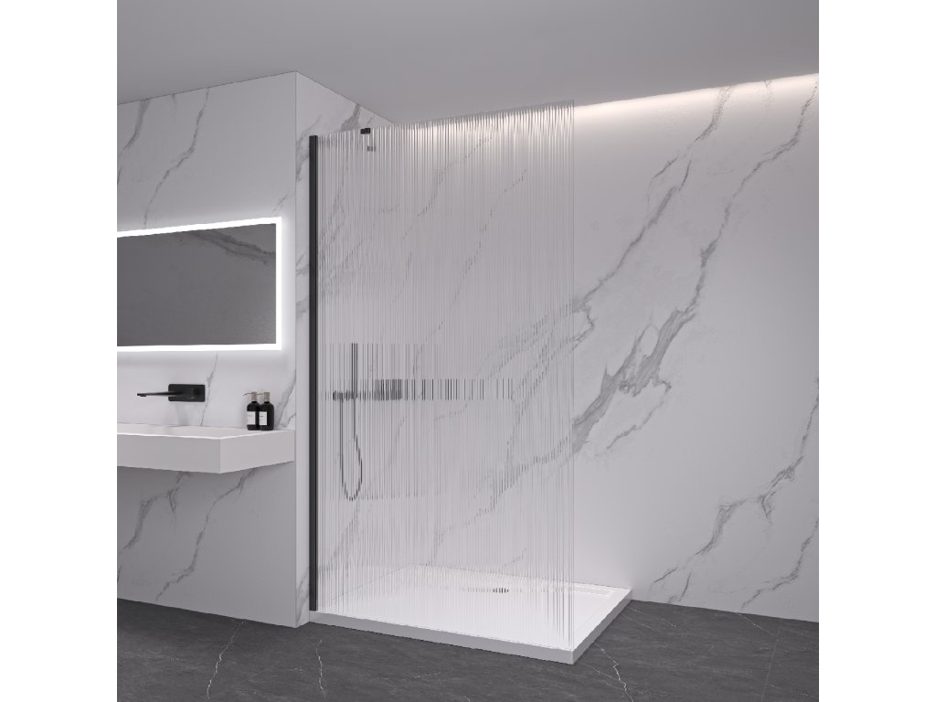 CERANO - Sprchová zástena Walk-in Onyx YL/P - 8 mm - čierna matná, ryhované sklo - 150x200 cm
