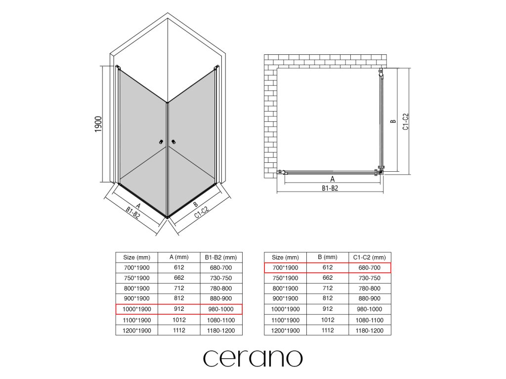 V rámci tejto série ponúkame širokú škálu rozmerov, aby sme uspokojili rôzne potreby našich zákazníkov. Všetky sprchové kúty, dvere a zásteny značky CERANO sú plne kompatibilné so sprchovými vaničkami CERANO v rovnakých rozmeroch, čo zaisťuje bezproblémovú inštaláciu a dokonalé zladenie.