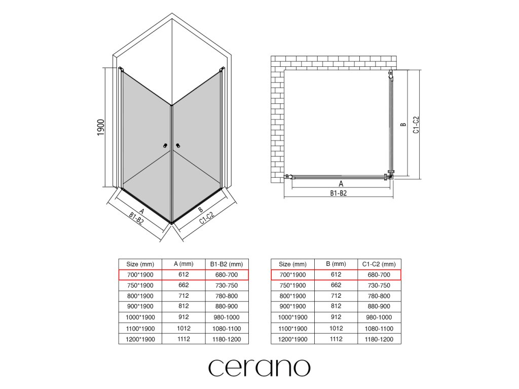 V rámci tejto série ponúkame širokú škálu rozmerov, aby sme uspokojili rôzne potreby našich zákazníkov. Všetky sprchové kúty, dvere a zásteny značky CERANO sú plne kompatibilné so sprchovými vaničkami CERANO v rovnakých rozmeroch, čo zaisťuje bezproblémovú inštaláciu a dokonalé zladenie.