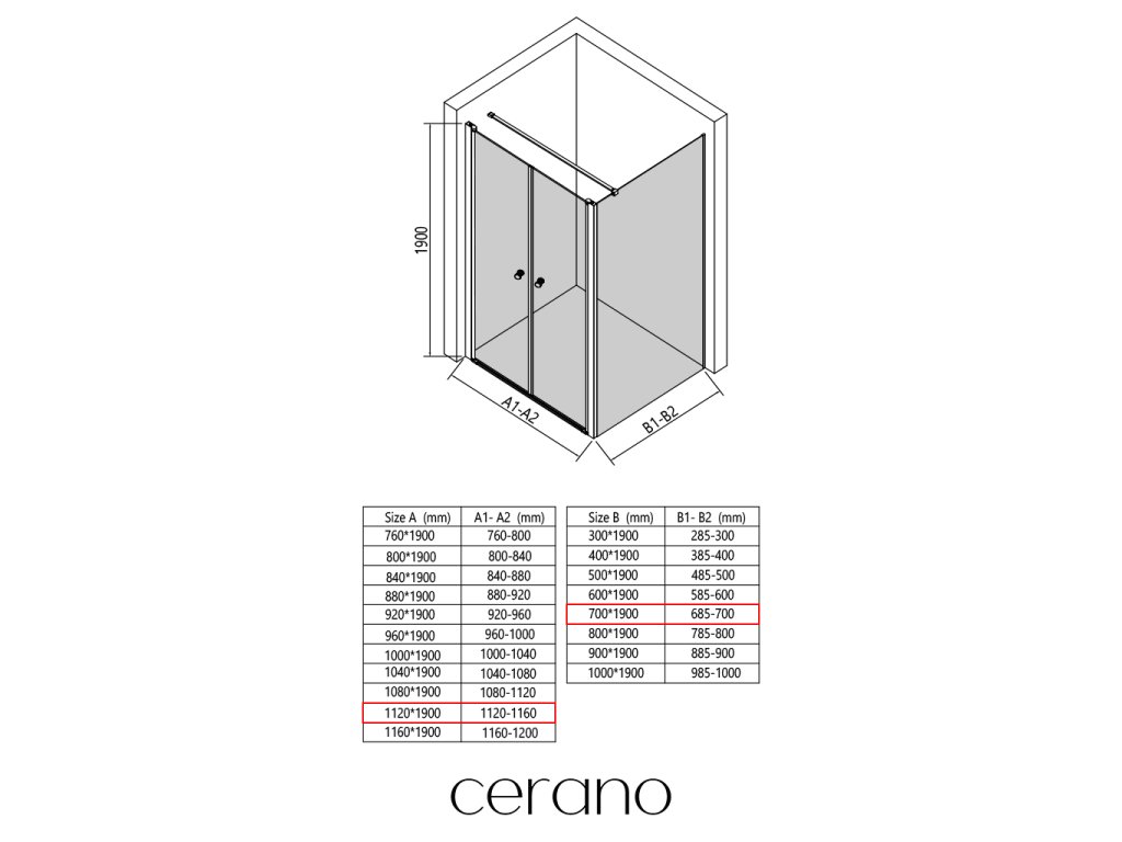 V rámci tejto série ponúkame širokú škálu rozmerov, aby sme uspokojili rôzne potreby našich zákazníkov. Všetky sprchové kúty, dvere a zásteny značky CERANO sú plne kompatibilné so sprchovými vaničkami CERANO v rovnakých rozmeroch, čo zaisťuje bezproblémovú inštaláciu a dokonalé zladenie.