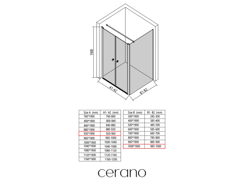 V rámci tejto série ponúkame širokú škálu rozmerov, aby sme uspokojili rôzne potreby našich zákazníkov. Všetky sprchové kúty, dvere a zásteny značky CERANO sú plne kompatibilné so sprchovými vaničkami CERANO v rovnakých rozmeroch, čo zaisťuje bezproblémovú inštaláciu a dokonalé zladenie.