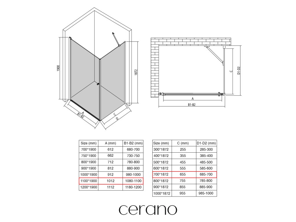 V rámci tejto série ponúkame širokú škálu rozmerov, aby sme uspokojili rôzne potreby našich zákazníkov. Všetky sprchové kúty, dvere a zásteny značky CERANO sú plne kompatibilné so sprchovými vaničkami CERANO v rovnakých rozmeroch, čo zaisťuje bezproblémovú inštaláciu a dokonalé zladenie.