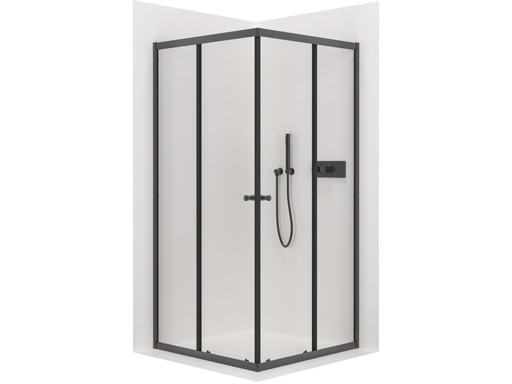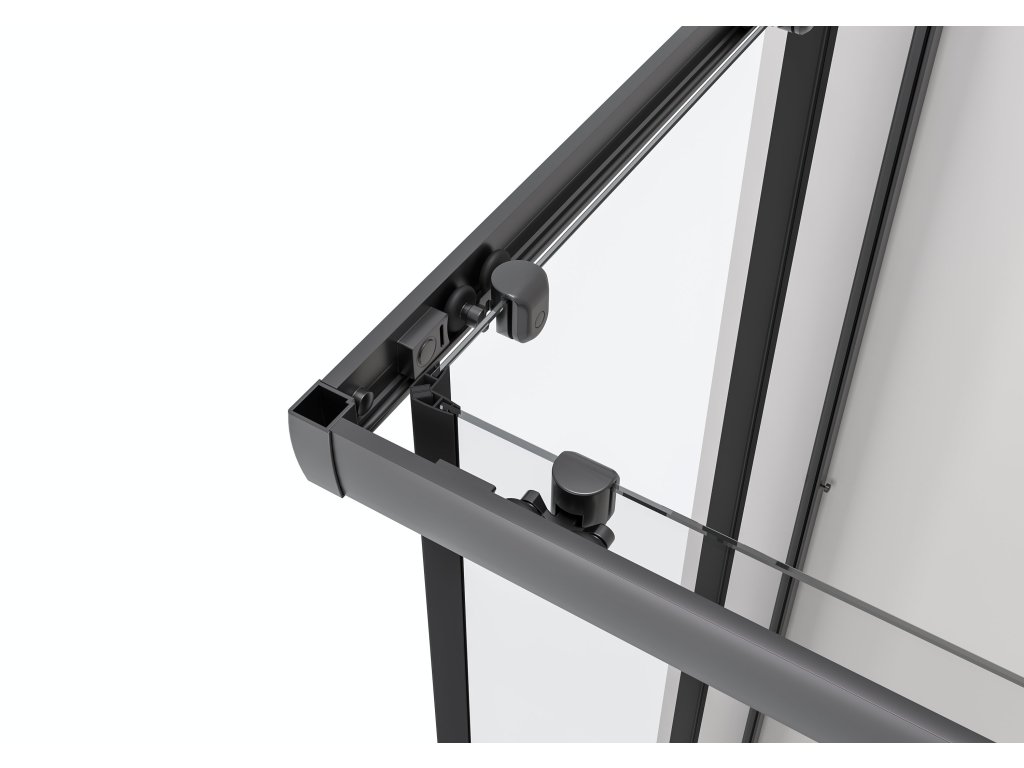Čierne prvky dodávajú moderný a univerzálny vzhľad, ktorý dobre vyzerá v akomkoľvek štýle vašej kúpeľne. Sprchovací kút má univerzálny profil, ktorý je možné namontovať vpravo alebo vľavo .