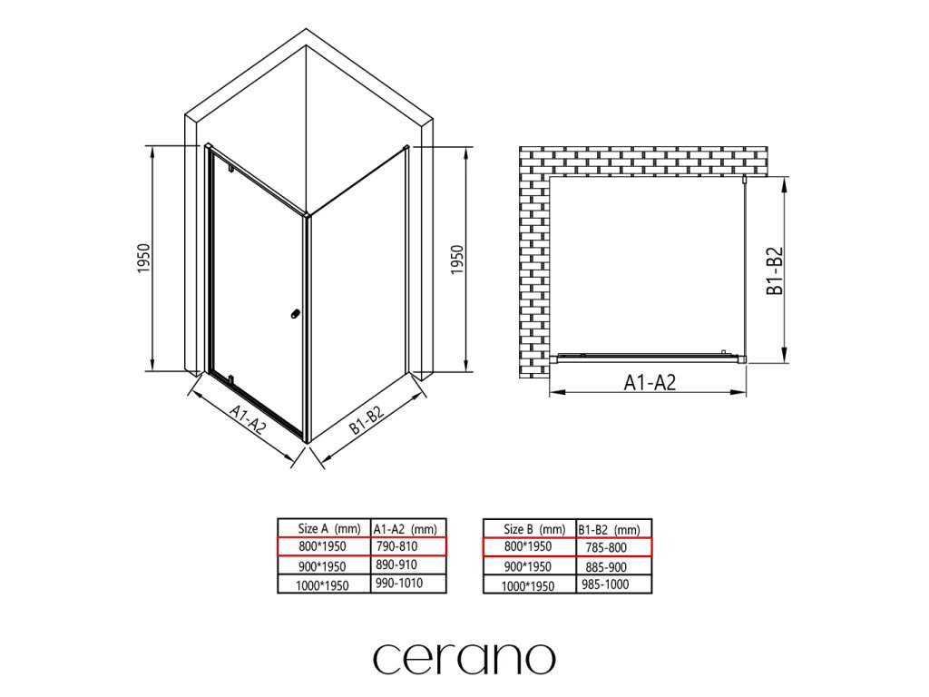 V rámci tejto série ponúkame širokú škálu rozmerov, aby sme uspokojili rôzne potreby našich zákazníkov. Všetky sprchové kúty, dvere a zásteny značky CERANO sú plne kompatibilné so sprchovými vaničkami CERANO v rovnakých rozmeroch, čo zaisťuje bezproblémovú inštaláciu a dokonalé zladenie. Sprchovací kút je možné navyše inštalovať flexibilne – buď na zodpovedajúcu sprchovú vaničku, alebo priamo na podlahu podľa vašich preferencií a možností kúpeľne.