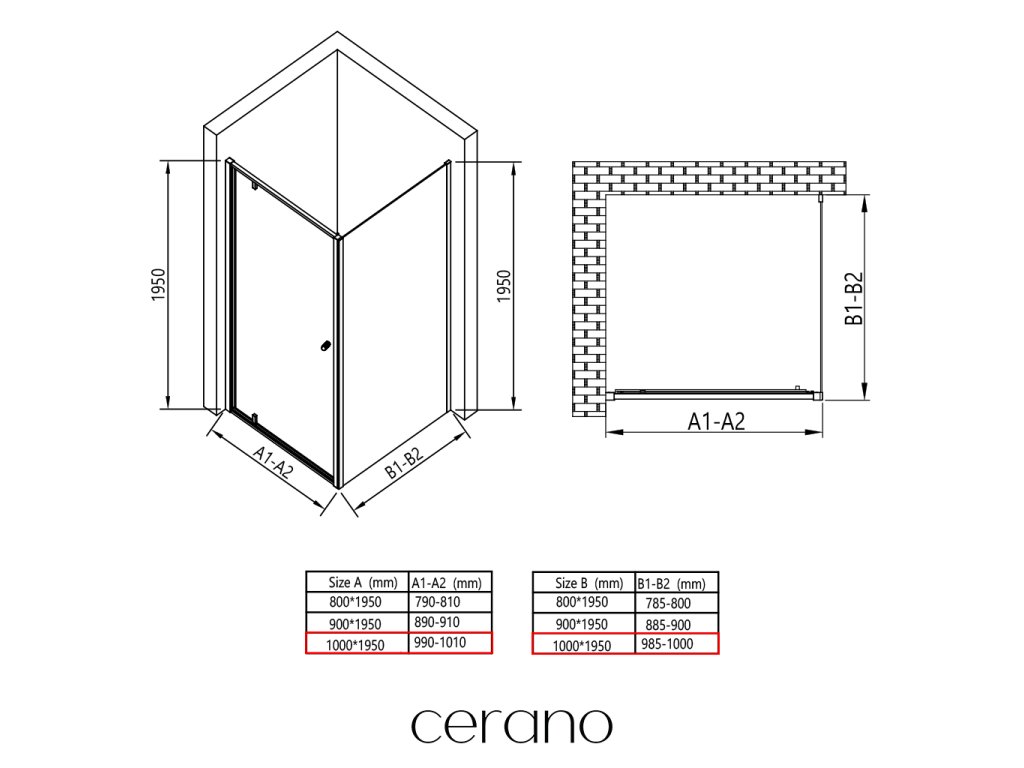 V rámci tejto série ponúkame širokú škálu rozmerov, aby sme uspokojili rôzne potreby našich zákazníkov. Všetky sprchové kúty, dvere a zásteny značky CERANO sú plne kompatibilné so sprchovými vaničkami CERANO v rovnakých rozmeroch, čo zaisťuje bezproblémovú inštaláciu a dokonalé zladenie. Sprchovací kút je možné navyše inštalovať flexibilne – buď na zodpovedajúcu sprchovú vaničku, alebo priamo na podlahu podľa vašich preferencií a možností kúpeľne.