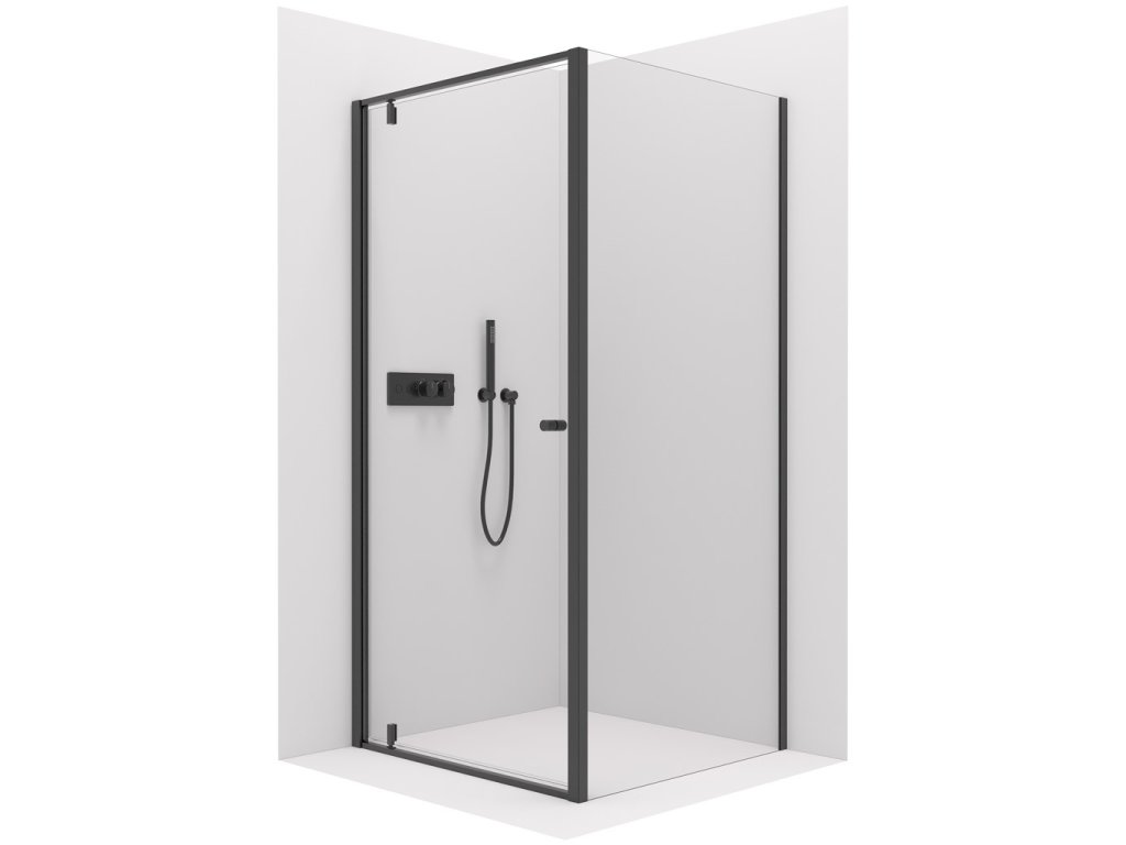 CERANO - Sprchovací kút Ferri L/P - 6 mm - čierna matná, transparentné sklo - 80x100x195 cm - pivotový