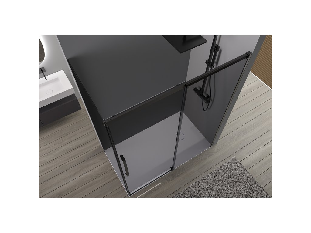 CERANO - Sprchovací kút Lantono L/P - 8 mm - Soft-Close - čierna matná, grafitové sklo - 100x90x195 cm - posuvný