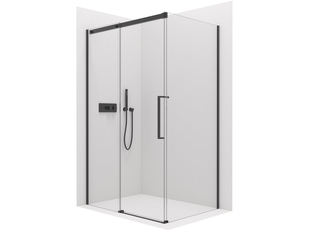 CERANO - Sprchovací kút Lantono L/P - 8 mm - Soft-Close - čierna matná, transparentné sklo - 170x100x195 cm - posuvný
