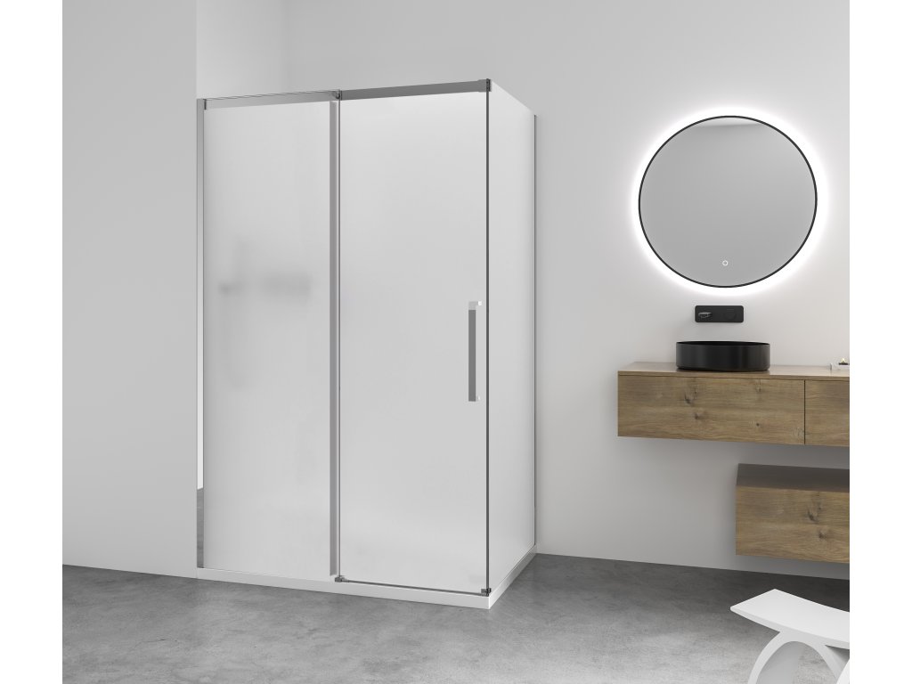 CERANO - Sprchovací kút Lantono - ľavá - 8 mm - Soft-Close - chróm, mliečne sklo - 100x100 cm - posuvný