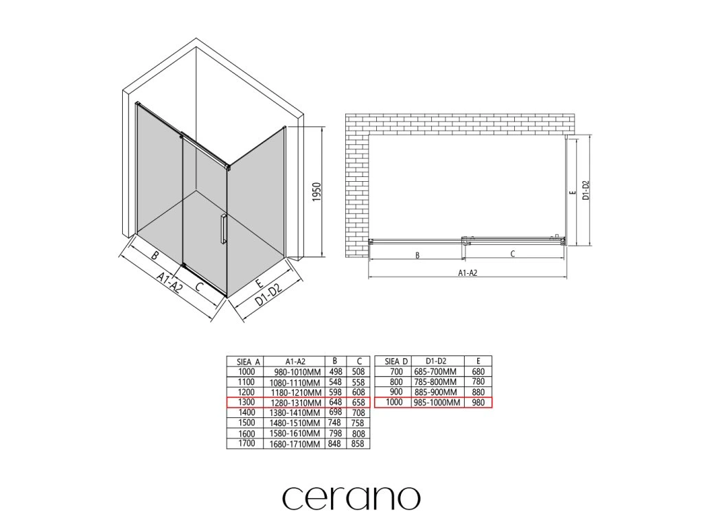 V rámci tejto série ponúkame širokú škálu rozmerov, aby sme uspokojili rôzne potreby našich zákazníkov. Všetky sprchové kúty, dvere a zásteny značky CERANO sú plne kompatibilné so sprchovými vaničkami CERANO v rovnakých rozmeroch, čo zaisťuje bezproblémovú inštaláciu a dokonalé zladenie. Sprchovací kút je možné navyše inštalovať flexibilne – buď na zodpovedajúcu sprchovú vaničku, alebo priamo na podlahu podľa vašich preferencií a možností kúpeľne.