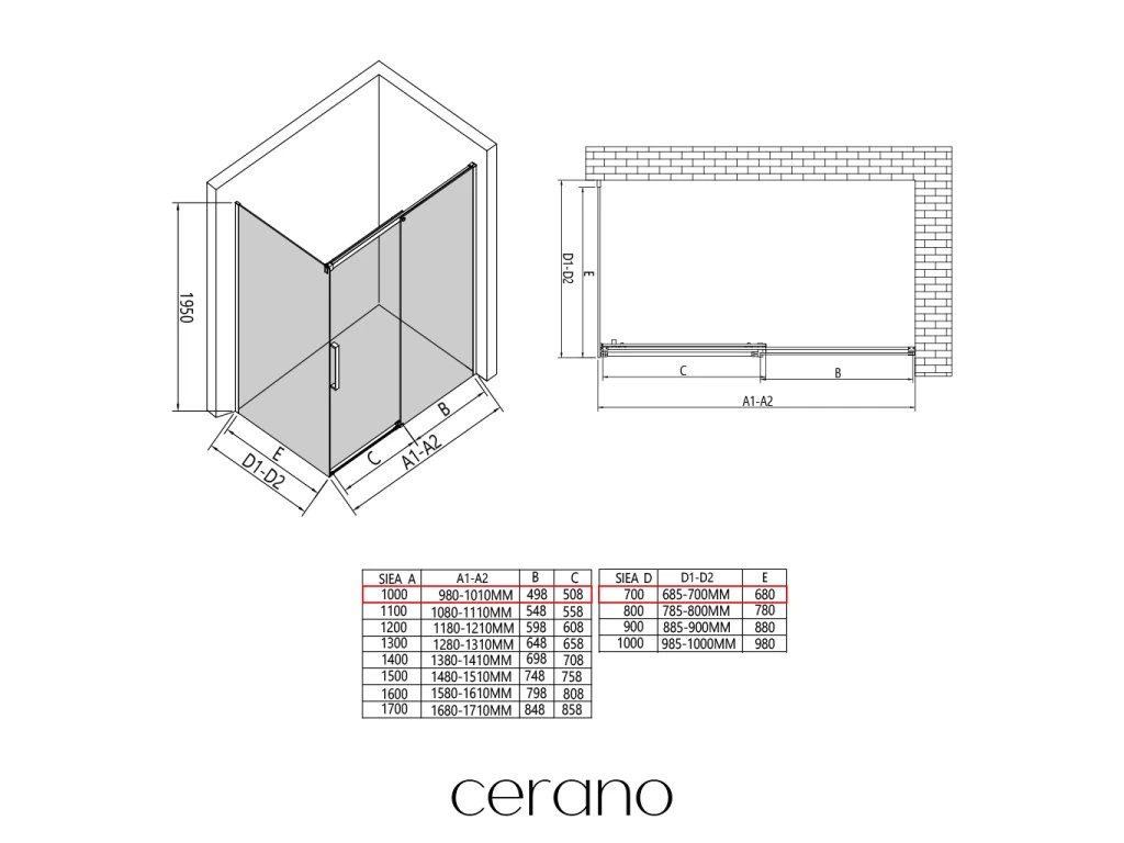 V rámci tejto série ponúkame širokú škálu rozmerov, aby sme uspokojili rôzne potreby našich zákazníkov. Všetky sprchové kúty, dvere a zásteny značky CERANO sú plne kompatibilné so sprchovými vaničkami CERANO v rovnakých rozmeroch, čo zaisťuje bezproblémovú inštaláciu a dokonalé zladenie. Sprchovací kút je možné navyše inštalovať flexibilne – buď na zodpovedajúcu sprchovú vaničku, alebo priamo na podlahu podľa vašich preferencií a možností kúpeľne.