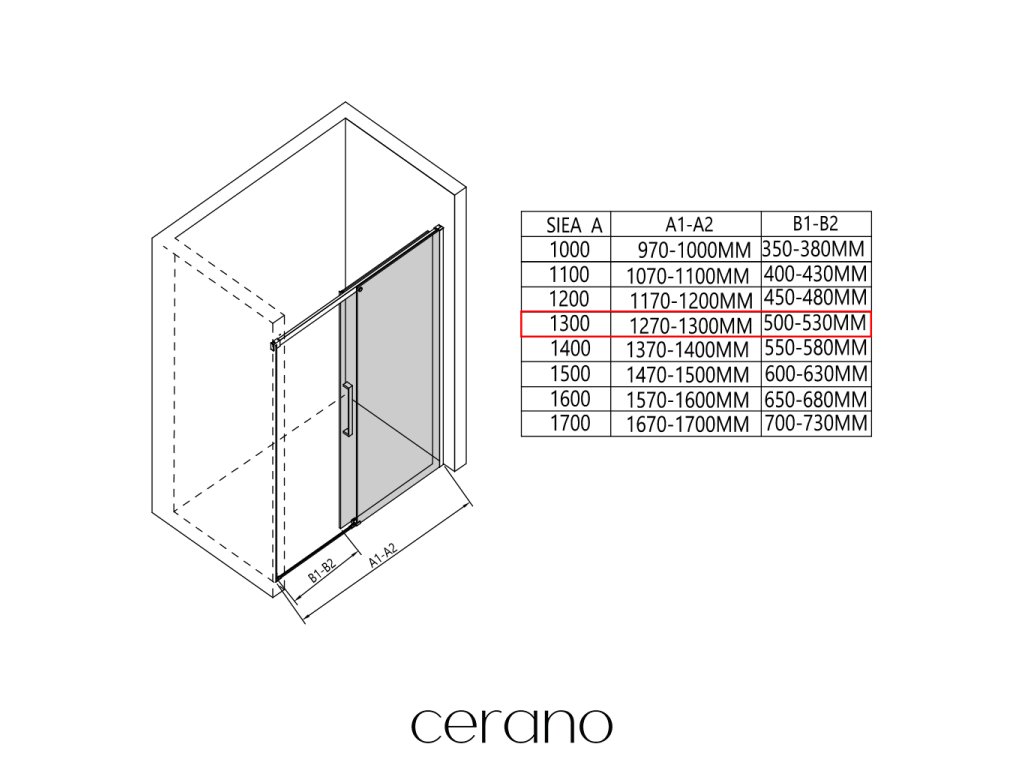 V rámci tejto série ponúkame širokú škálu rozmerov, aby sme uspokojili rôzne potreby našich zákazníkov. Všetky sprchové kúty, dvere a zásteny značky CERANO sú plne kompatibilné so sprchovými vaničkami CERANO v rovnakých rozmeroch, čo zaisťuje bezproblémovú inštaláciu a dokonalé zladenie. Sprchovací kút je možné navyše inštalovať flexibilne – buď na zodpovedajúcu sprchovú vaničku, alebo priamo na podlahu podľa vašich preferencií a možností kúpeľne.