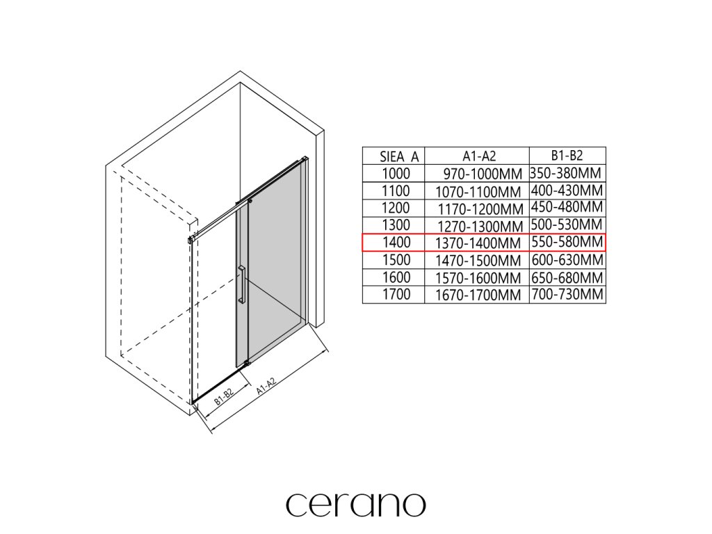 V rámci tejto série ponúkame širokú škálu rozmerov, aby sme uspokojili rôzne potreby našich zákazníkov. Všetky sprchové kúty, dvere a zásteny značky CERANO sú plne kompatibilné so sprchovými vaničkami CERANO v rovnakých rozmeroch, čo zaisťuje bezproblémovú inštaláciu a dokonalé zladenie. Sprchovací kút je možné navyše inštalovať flexibilne – buď na zodpovedajúcu sprchovú vaničku, alebo priamo na podlahu podľa vašich preferencií a možností kúpeľne.
